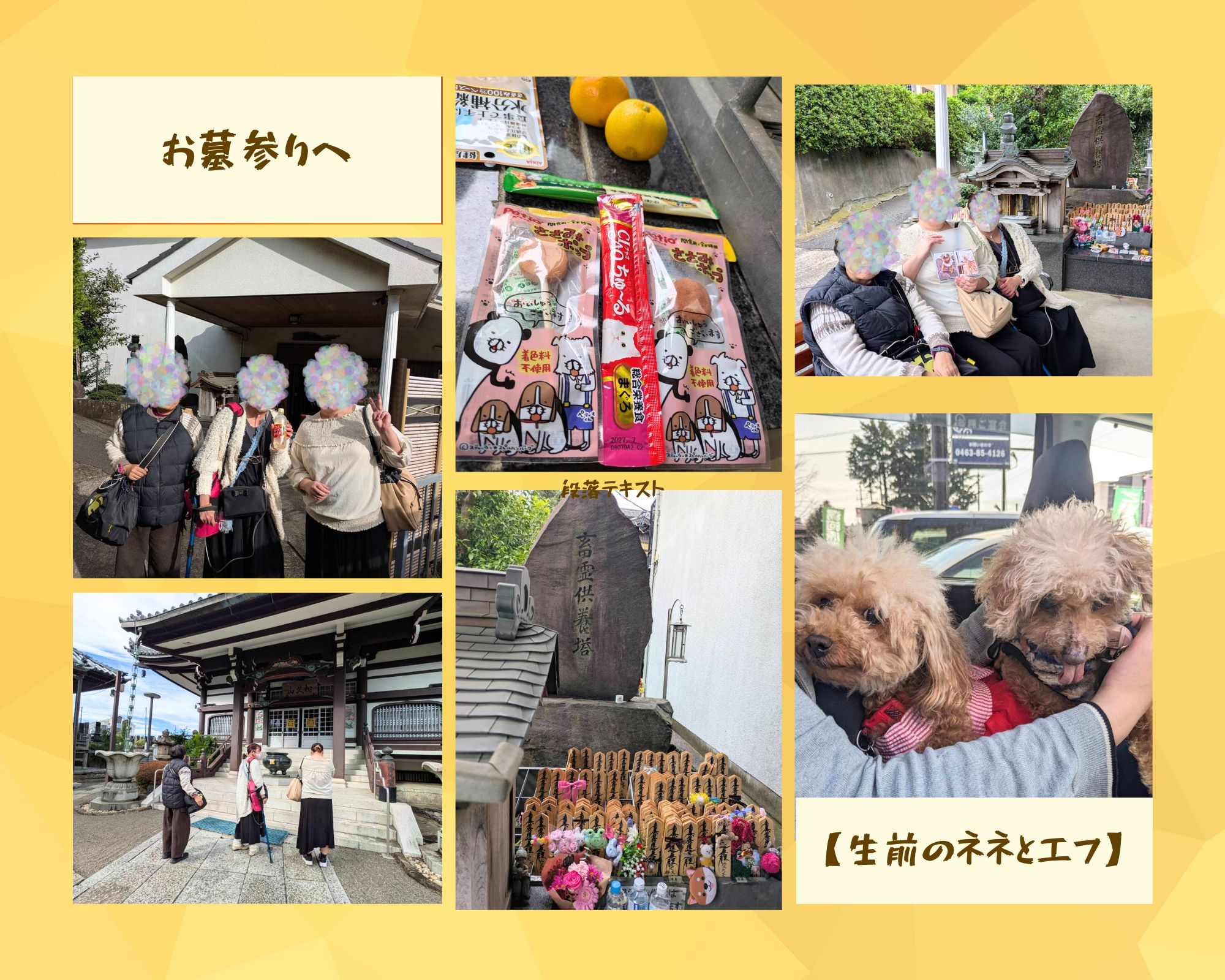先日、スタッフと利用者さんで横浜市の妙蓮寺へお墓参りに行ってきました。そこには、ワンダフルライフのホーム犬だったネネとエ […]